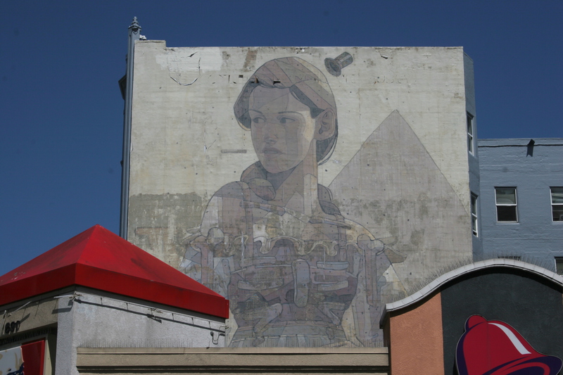 mural (score = 0.54477) sign (score = 0.13073) graffiti (score = 0.07619) face (score = 0.05085) faces (score = 0.03371) woman (score = 0.02418) sculpture (score = 0.01851) man (score = 0.01586) |